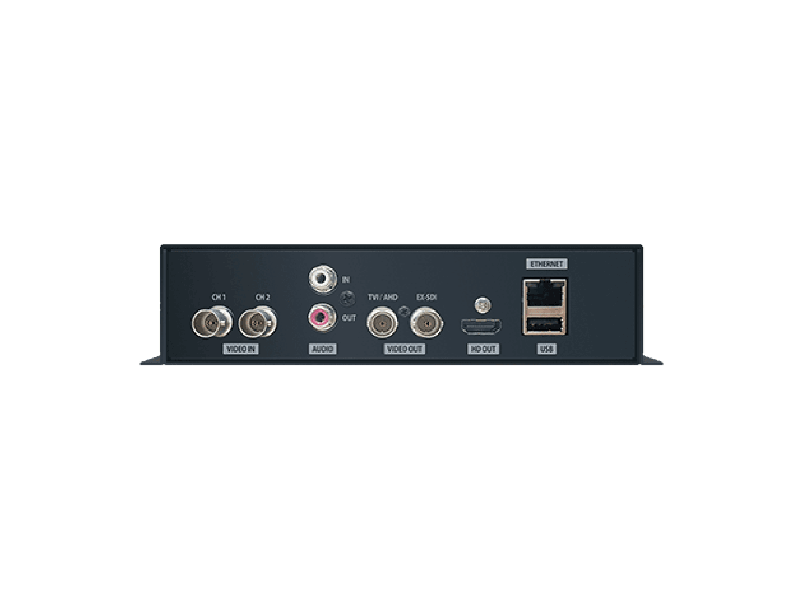 Enregistreur vidéo numérique universel Numérique : HD-SDI, EX-SDI (1.0, 2.0, 2.1) IP (Ethernet) : Onvif, WESP Supporte jusqu'à 2 canaux (2M, 4M, 4K UHD) Sortie 4K UHD (HDMI) 1 SSD interne 2.5” Streaming en temps réel (RTSP) Canal de service, DVR à distance VMS (Centre de contrôle), application mobile, WebViewer HTML5 Moniteur monté à l'arrière (option de support VESA) Module GPS (option)