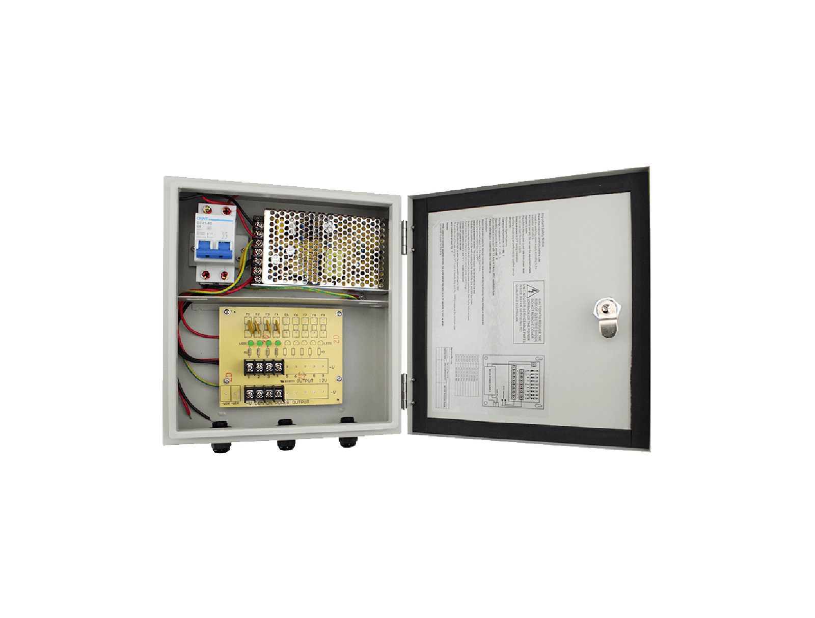 Boîte d'alimentation CE de taille compacte DC12V 5A 9CH. Plage d'entrée AC universelle. Fonctionnement par refroidissement par convection. Faible consommation d'énergie, haute fiabilité. Protection contre les courts-circuits, surtensions, surintensités et surchauffe. Indicateur LED de statut individuel pour chaque sortie.